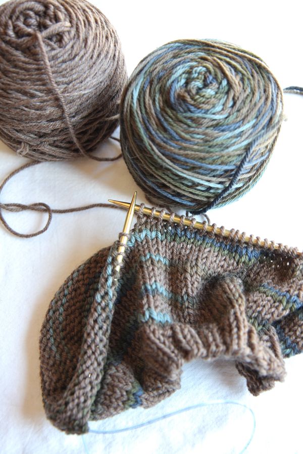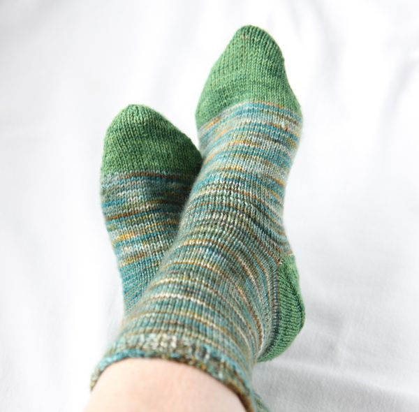 When I got this great yarn at Rae’s, I wanted to get going on some socks. This is just a plain, stockinette sock using the technique I learned at Rae’s to knit socks without a pattern, toe-up. I decided to knit the leg in plain stockinette because I just wanted the self striping yarn to show without any texture.