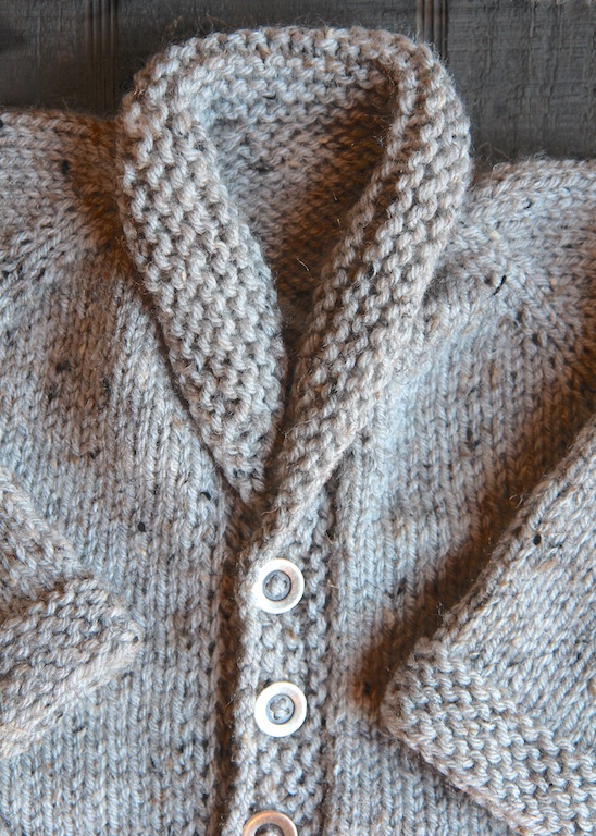Shawl Baby Sweater and Garter Ear Flap Hat » shawl-sweater-closeup