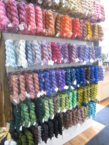 Rae had a “Sock Hop” at her store and I couldn’t resist all the sock yarn. I got some lovely hand dyed yarns from Pagewood Farms and Yarn Hollow. There was a green colorway I loved and so I just had to start some socks. I needed some mindless knitting anyway, because I finished the men’s hat. There is no pattern, because I’m knitting them using the patternless method taught by Barbara in her Sock Class at Rae’s. It’s really empowering, knowing you can knit something without a pattern. I used Judy’s Magic Cast-On, cast on 16 stitches, increased to 60 on size 0 needles and am working straight stockinette for the foot. I’m going to put in an afterthought heel and then not sure how I want to knit the leg.